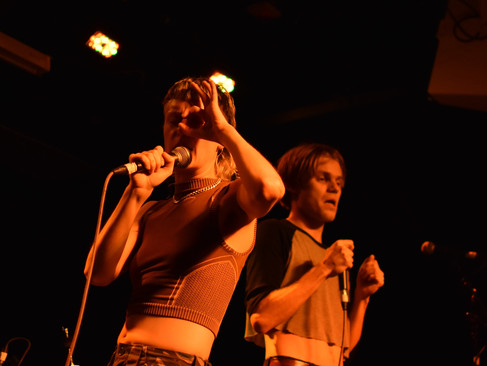 Bendy Wendy stalks across the stage, lean in a tank top, expressive and stealthy. Hector Boogieman is softer, with the cutest hair clips holding back a fluffy mop of brown hair. With a roar, Bendy Wendy announces the debut of a new track, right here, right now, and it’s a banger. The bass is so deep it reverberates through your hip bones. The two are in sync in a way only close friends can be. Both move like boogie snakes. Harmonies are long forgotten, instead the pair bellow to chorus - "Think of yourselves never each other and when things go wrong you can always do another" - of their post apocalyptic new hit. "Let me see your sweaty armpits!" screams Bendy Wendy. The crowd complies, bending to their whim. “Big up!” they scream, “It's been such a good gig. Everyone gass yourselves up. There's a lot more to come.”